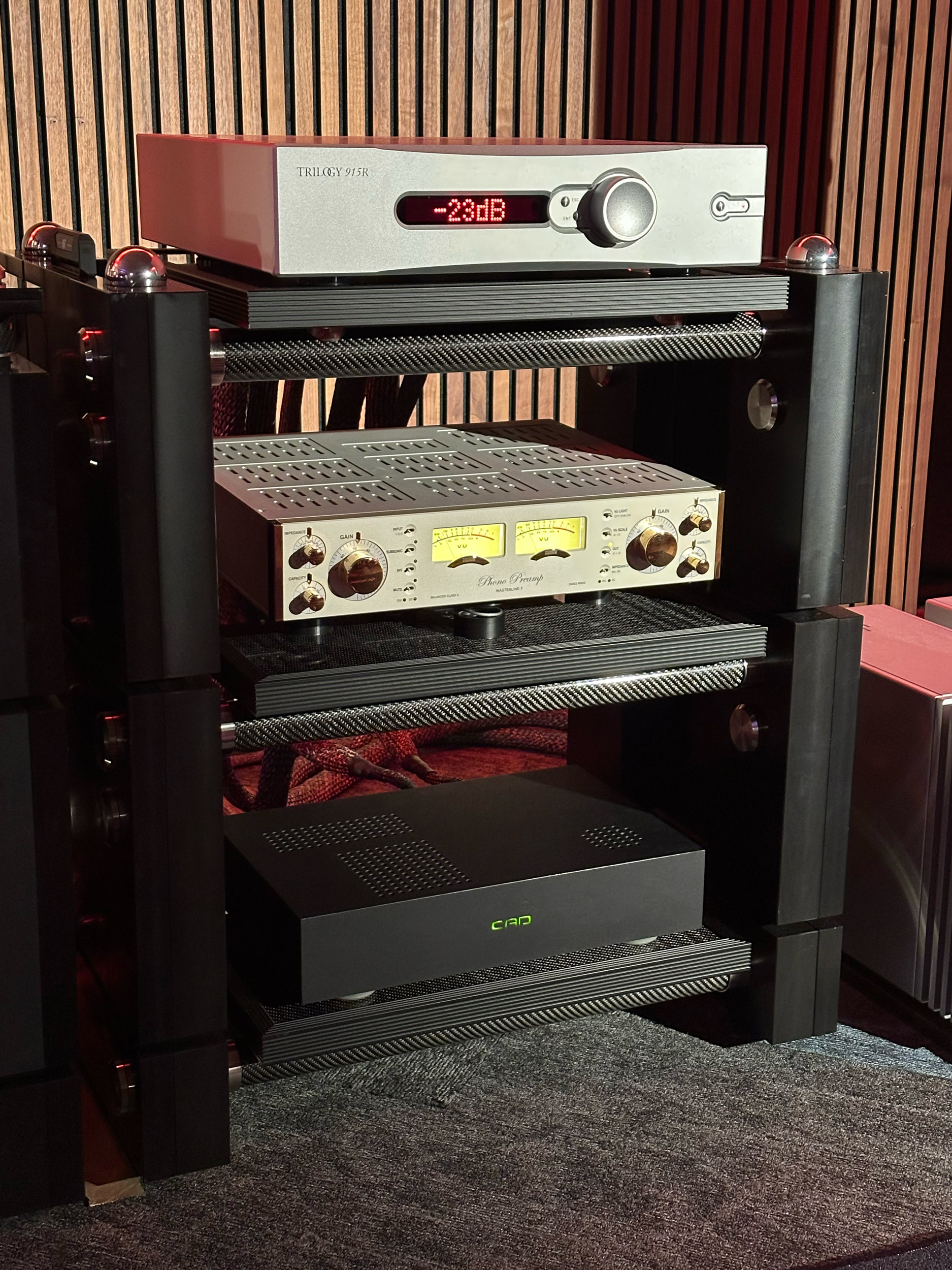 The demonstration system — built around the Resolution 3zero loudspeaker, supported by multiple IGx Infrasonic Generators, and driven by Trilogy 995R mono power amplifiers and the 914 preamplifier — delivered a level of performance that we consider to be among the finest we have achieved at an exhibition.